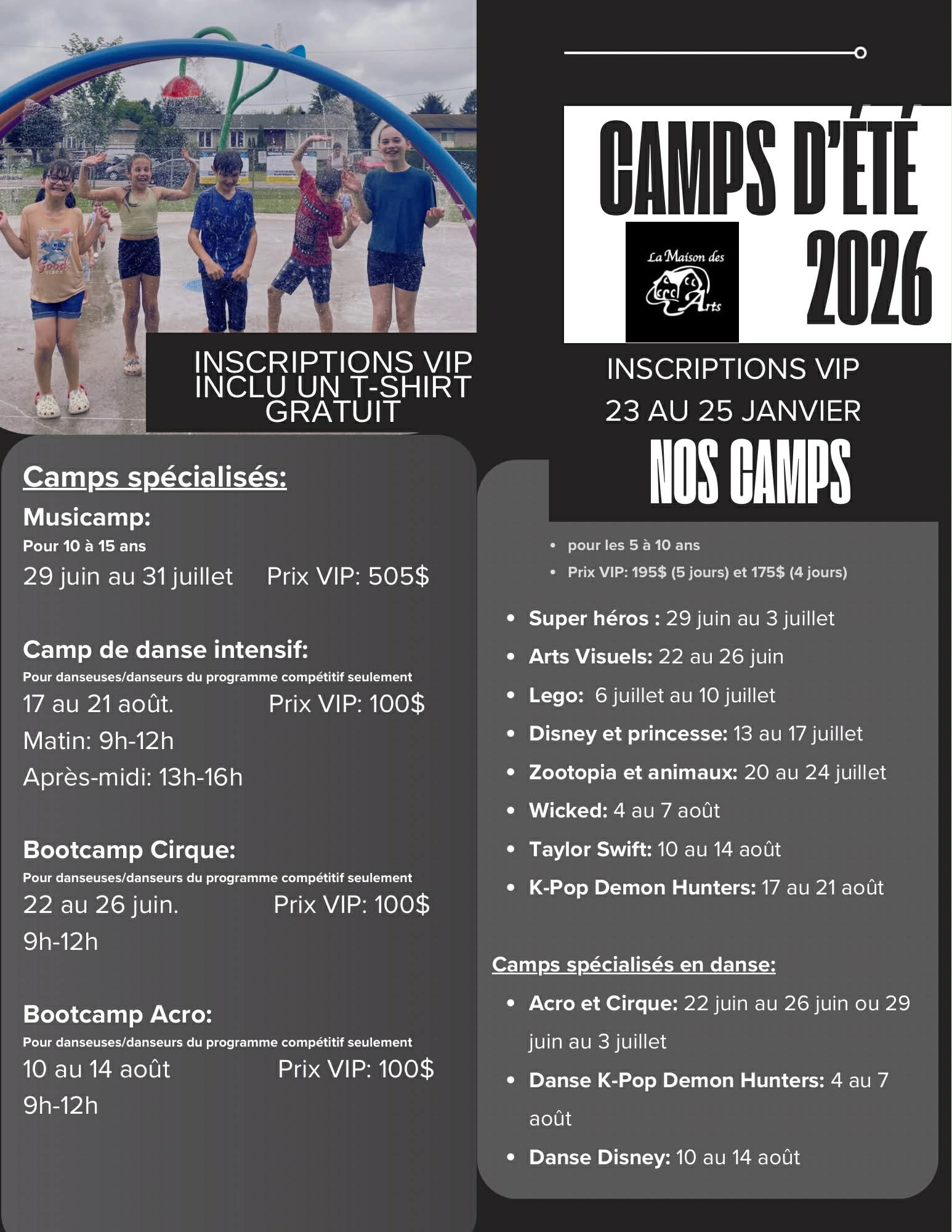 Uncategorized Inscription pour les camps d’été 2026! Publié par : MDA-admin 30/01/2026 Activé 30/01/2026